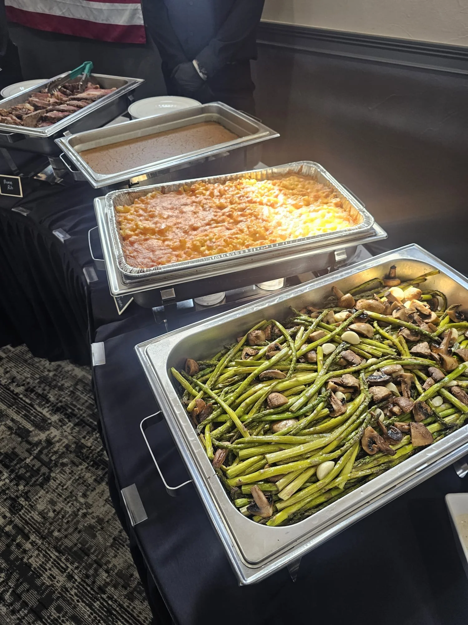 Professional Service Staff – $750 Food Minimum: At this service level, we will deliver your items, set up, and serve them buffet style for you and your guests. We will clean up the service area after your event.